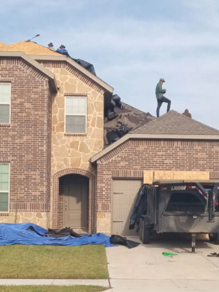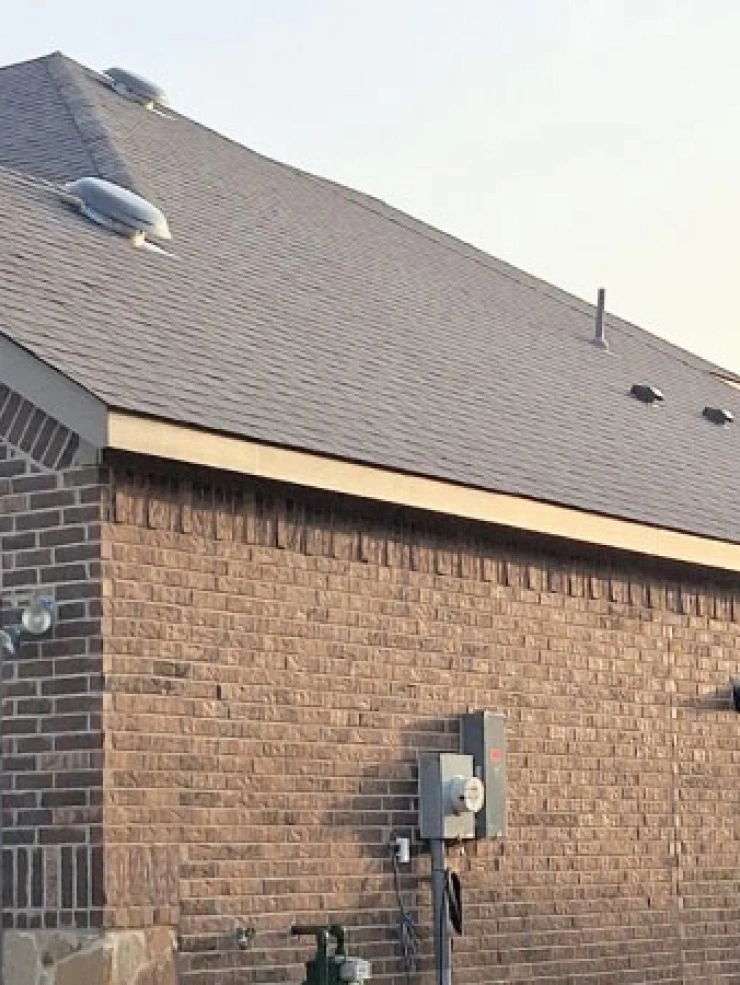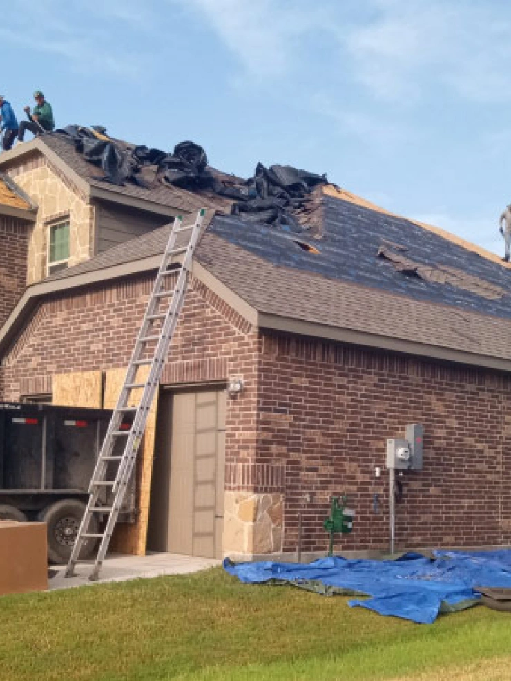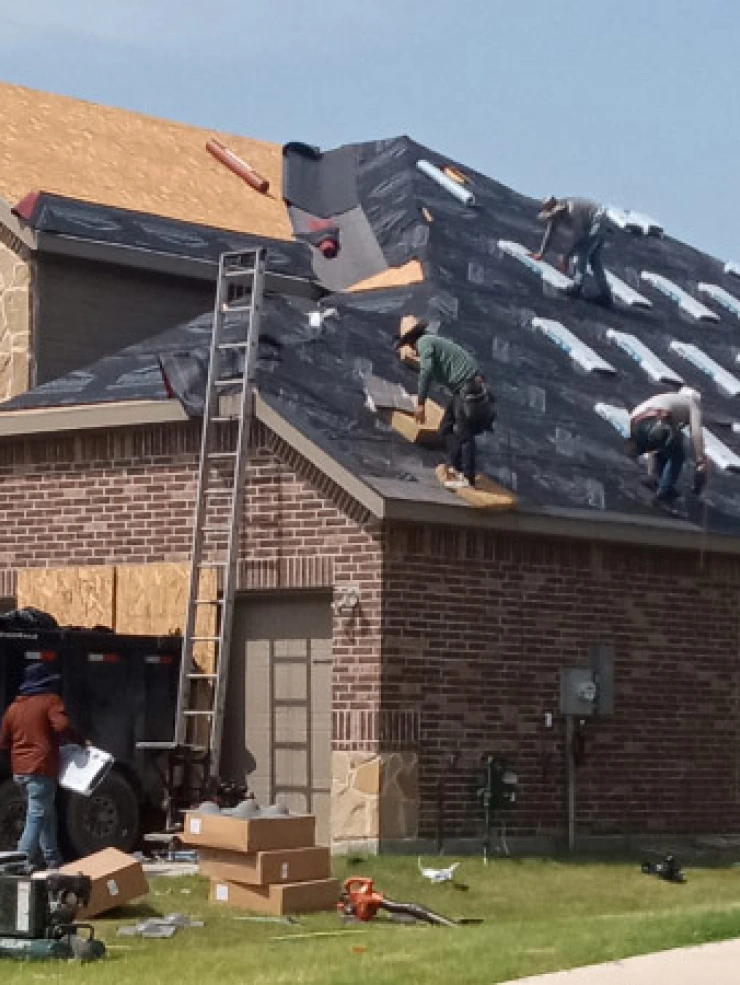 The homeowners contacted us after a storm caused damage to their roof, requiring immediate repair. Our skilled team took care of everything, repairing a roof with all the necessary elements—such as synthetic underlayment, ice and water shields, shingles, and updated hip and ridge sections. Ultimately, the clients received a fully renewed roof. Our roofing experts are highly experienced in storm damage roof repairs in Plano. We proudly serve Plano and its neighboring areas, including this project in Princeton.